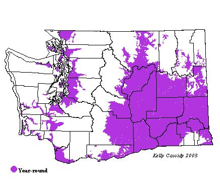 Ring-necked Pheasants are common in open areas at low elevations throughout the state. Releases take place in Yakima, Grant, Adams, Franklin, Walla Walla, Whitman, Asotin, Garfield, Columbia, and Benton counties east of the Cascades, and in Mason, Pacific, Pierce, Skagit, Snohomish, Thurston, and Whatcom counties west of the Cascades. Contact the Washington Department of Fish and Wildlife for release sites.