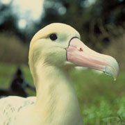 The albatrosses are large seabirds with very long wings. They have a unique flight, soaring on the wind currents above the waves, hardly ever flapping their wings, possibly even sleeping on the wing. This flight requires strong winds, and in the absence of these winds, they will be found swimming on the water's surface. They also forage on the surface of the water; some may dive under water, while others dabble at the surface. Albatrosses may live a very long time, more than 40 or 50 years in some cases. The majority of albatrosses live in the Southern Hemisphere and breed during the southern spring and summer. Even those that breed in the Northern Hemisphere breed during our winter. Two separate tubes are located on either side of the albatross's bill.